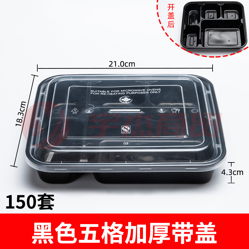 一次性餐盒五格长方形外卖打包盒多格分格便当快餐饭盒(150套/箱)
