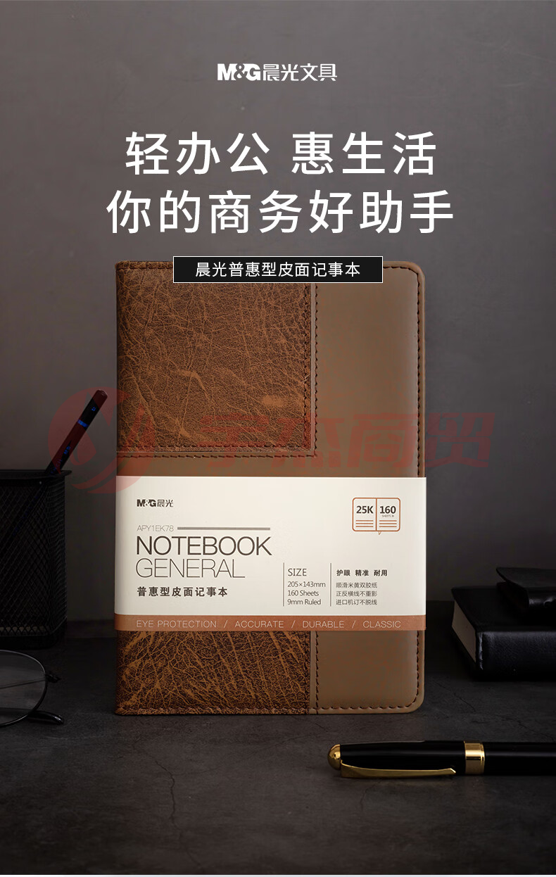 晨光普惠型皮面记事本 APY1EK78 25k (黄棕拼接) 160页