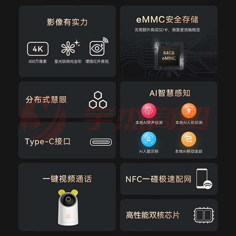 华为智选高清800W像素4K极清画质 64G内置存储 家用智能网络摄像机监控摄像头
