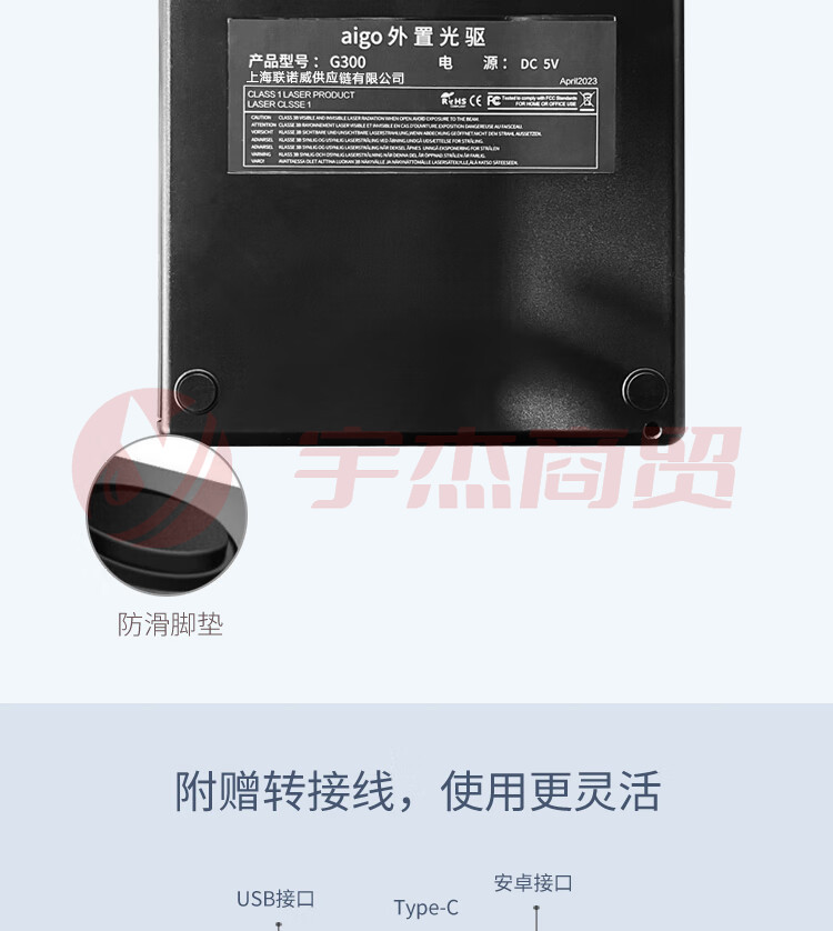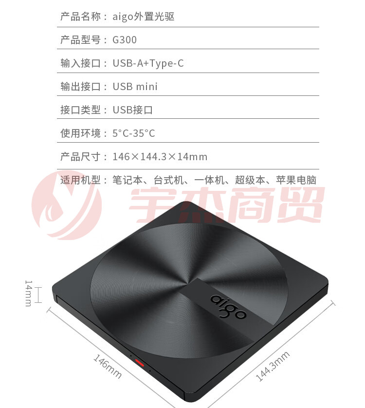爱国者(aigo)G300 8倍速 外置光驱 外置DVD刻录机 移动光驱 外接光驱 黑色(兼容Windows/苹果MAC双系统/G300)