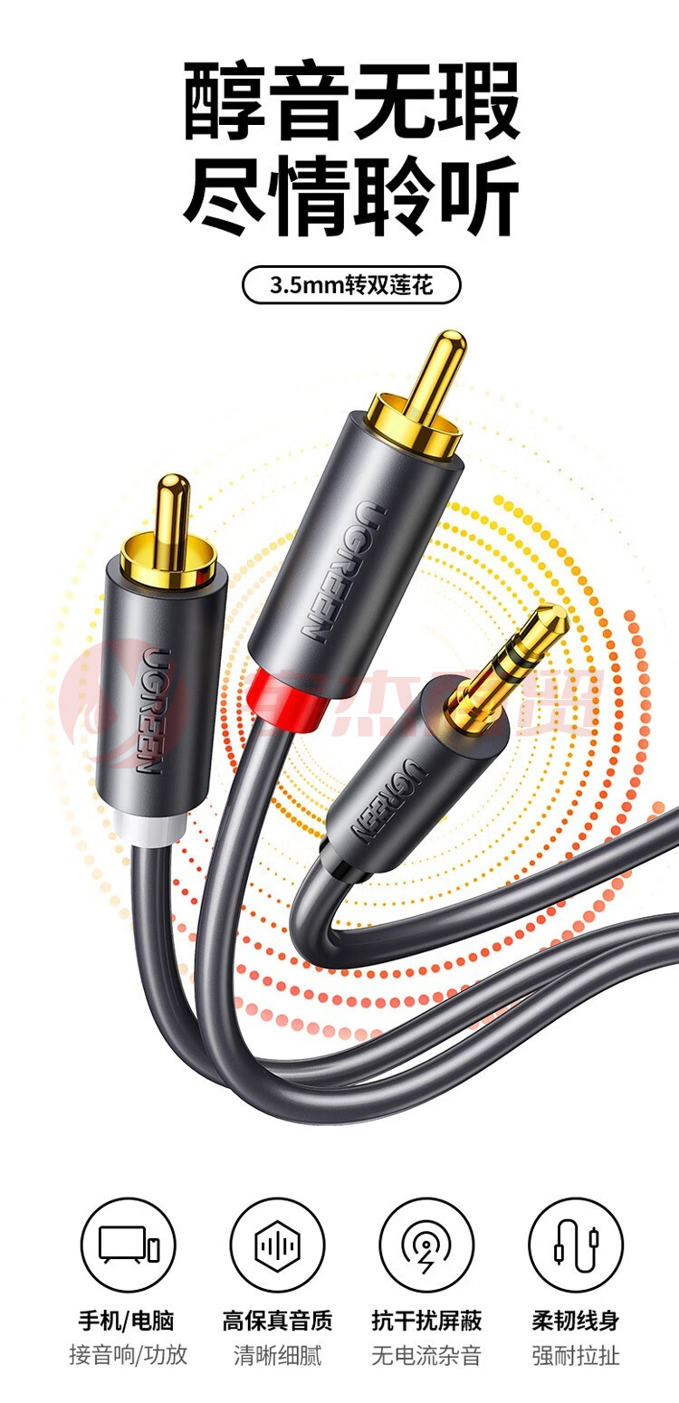 绿联 音频线一分二3.5mm转双莲花RCA插头公对公转换线通用笔记本电脑手机音箱功放低音炮连接线 3.5转双莲花数码线材