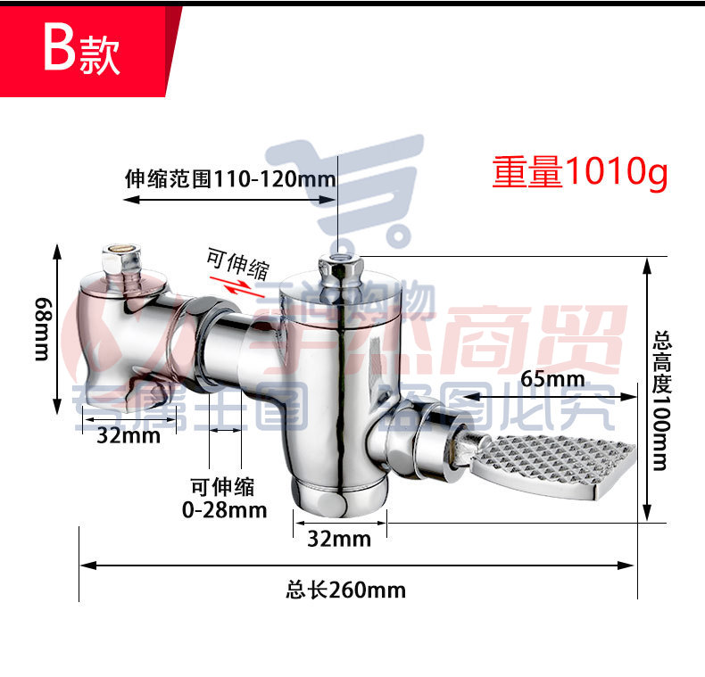 冲水阀 卧式可伸缩蹲便厕所脚踏延时阀 手按冲水器手动自闭