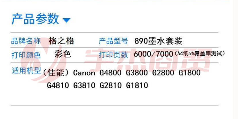 格之格 NI-P-00890C 红 GI-890 墨水适用佳能G1800 G1810 G2800 G2810 G3800 G3810 G4800 G4810