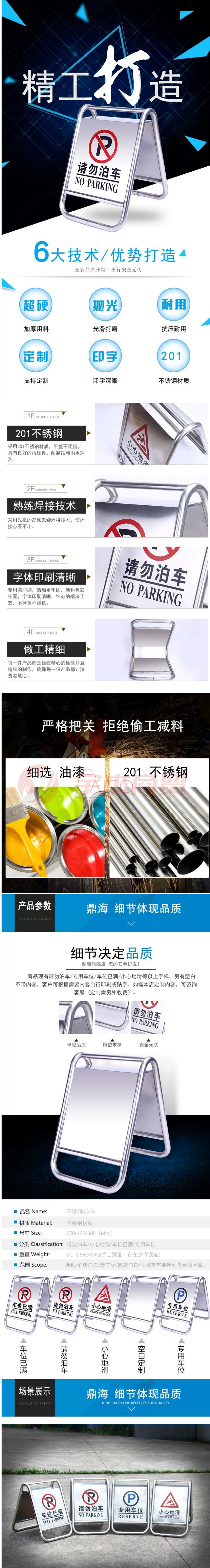 不锈钢禁止停车警示牌 请勿泊车告示牌专用车位停车位5kg