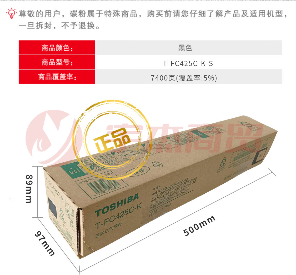 东芝 /(TOSHIBA)T-FC425C-K-S黑色墨粉2020AC/2021AC/2520AC/2521AC/2525AC/3025AC/3525AC/4525AC/5525AC/6525AC碳粉