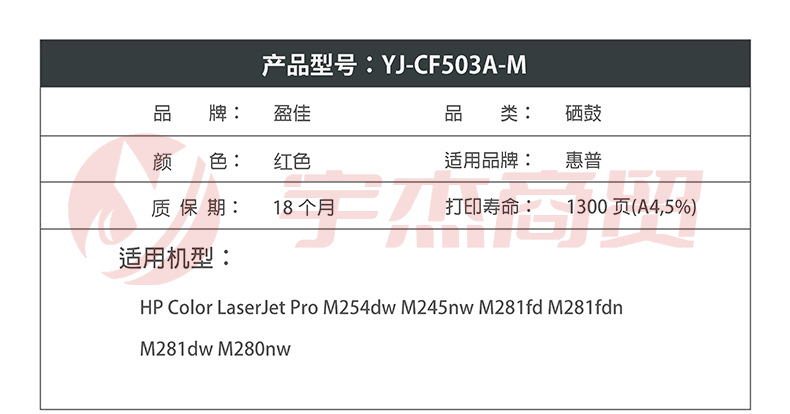 盈佳YJ CF503A(202A)红鼓-1.3K(带芯片)