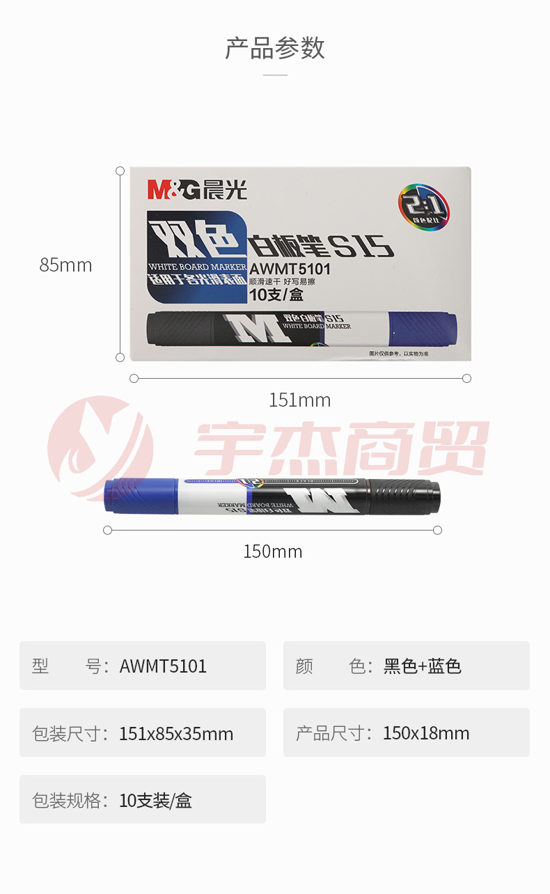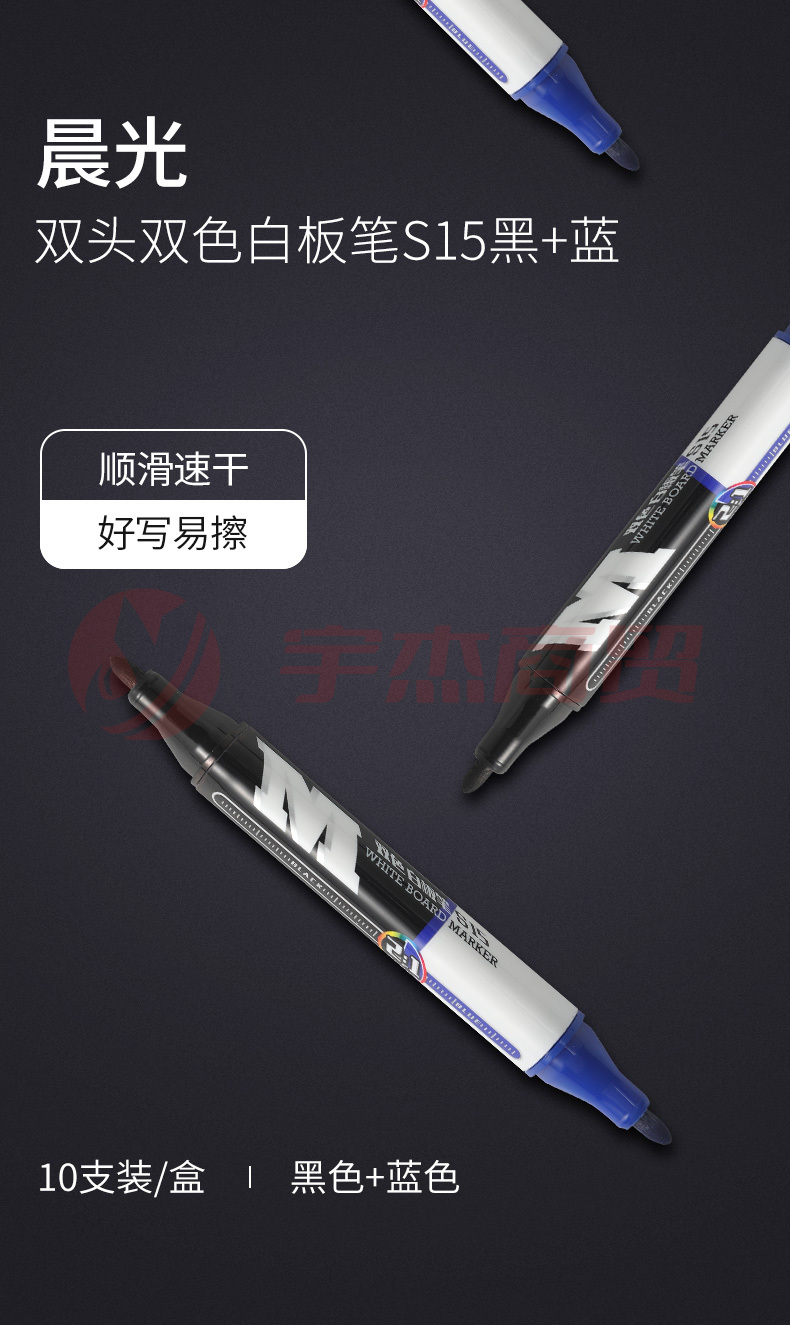 晨光双头双色白板笔S15黑+蓝AWMT5101 10支装