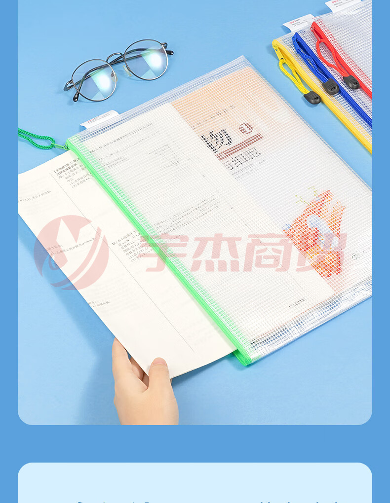 得力(deli)文件袋5654 A4透明网格拉链袋 资料文件袋 10只/包