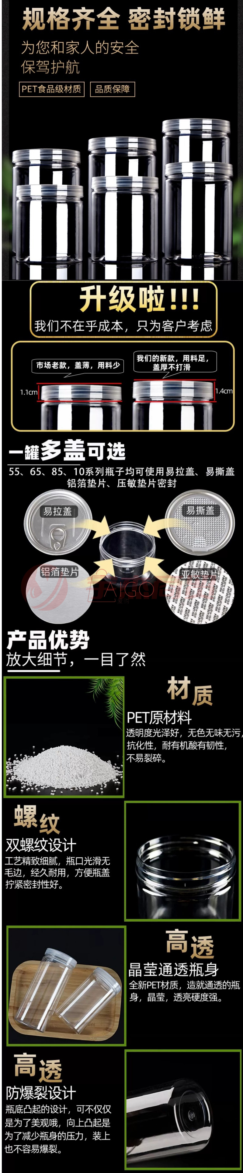 高透水晶盖食品级塑料罐特厚1040ml