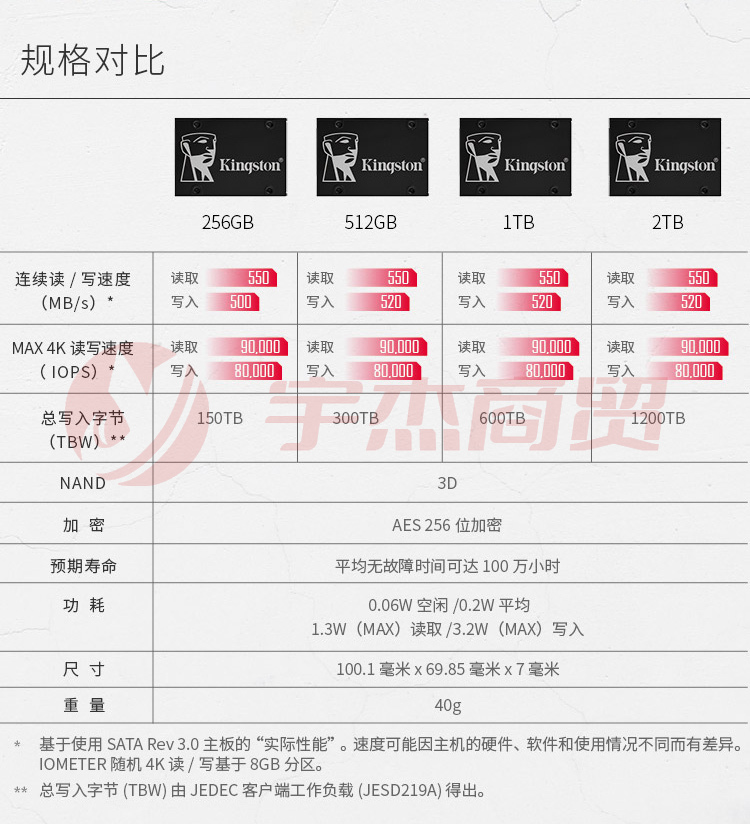 金士顿(Kingston) 512GB SATA3 SSD固态硬盘 KC600系列
