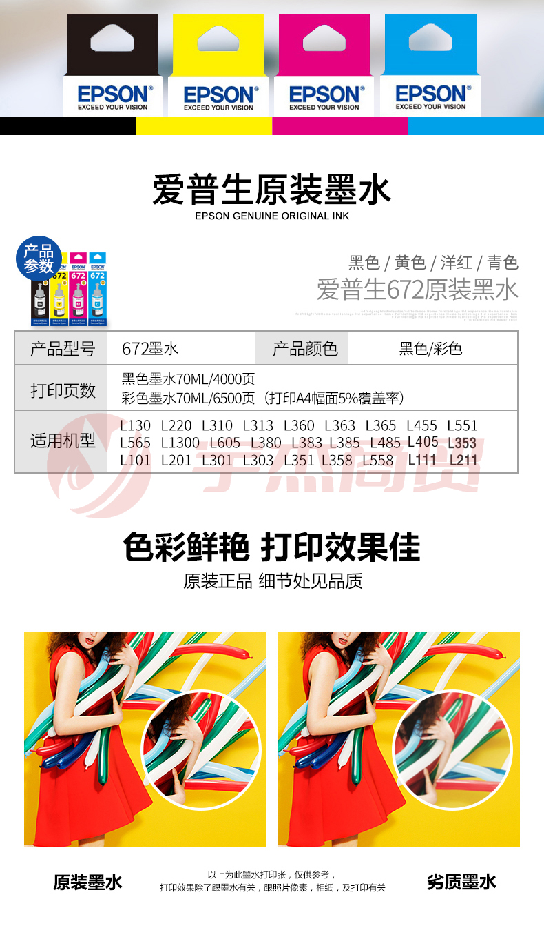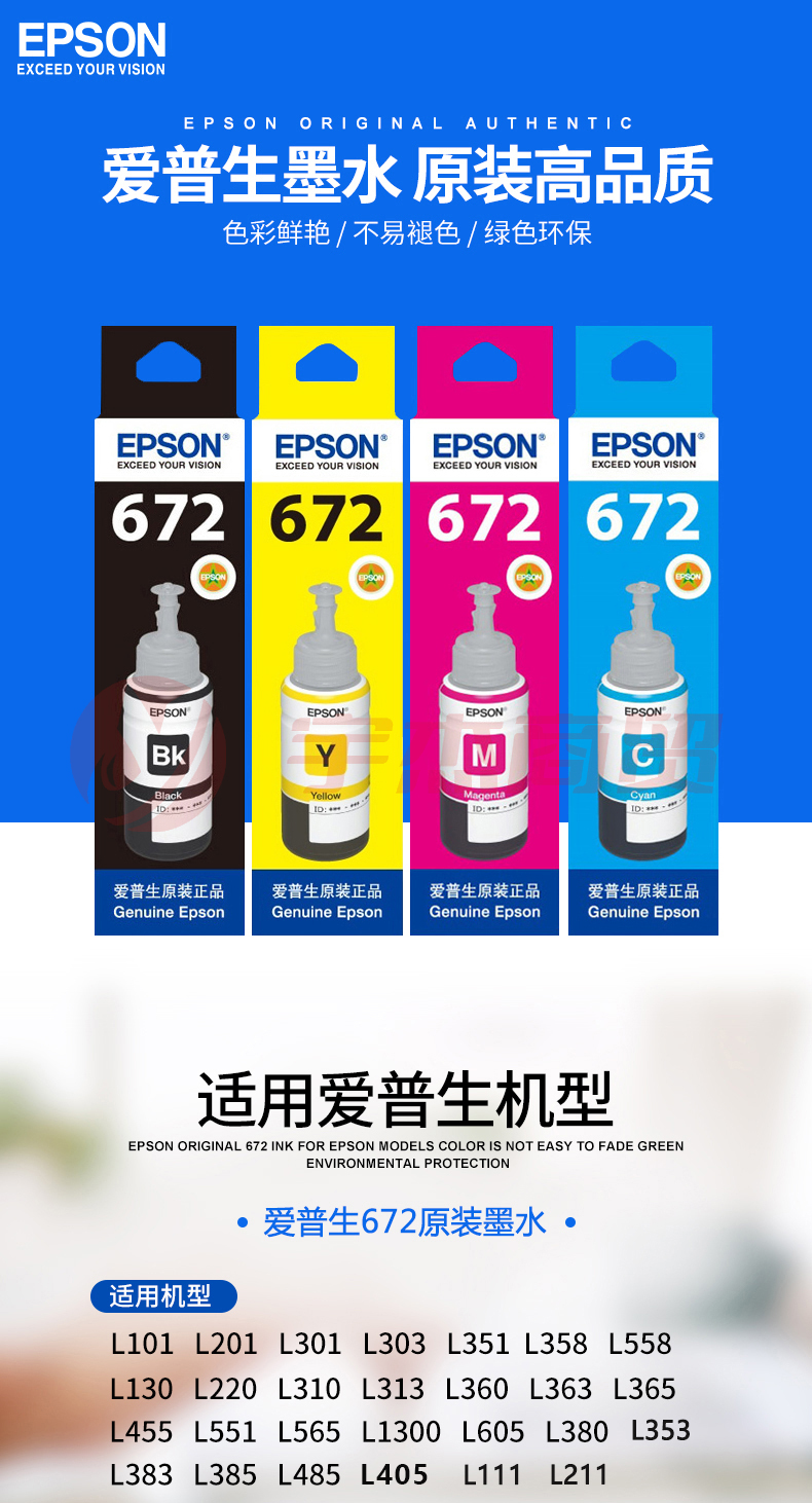 爱普生(Epson)T6721/T6722/T6723/T6724四色一套墨水 (适用于L383/380/360/1300/130/313)