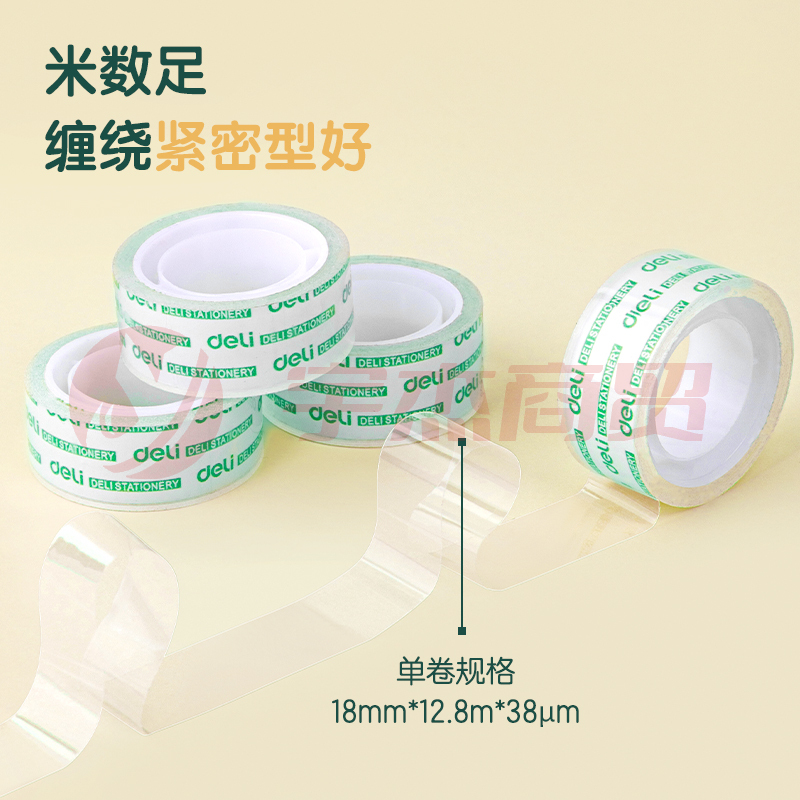 得力30061易撕型文具胶带18mm*14y*38um(高透)(8卷/筒)
