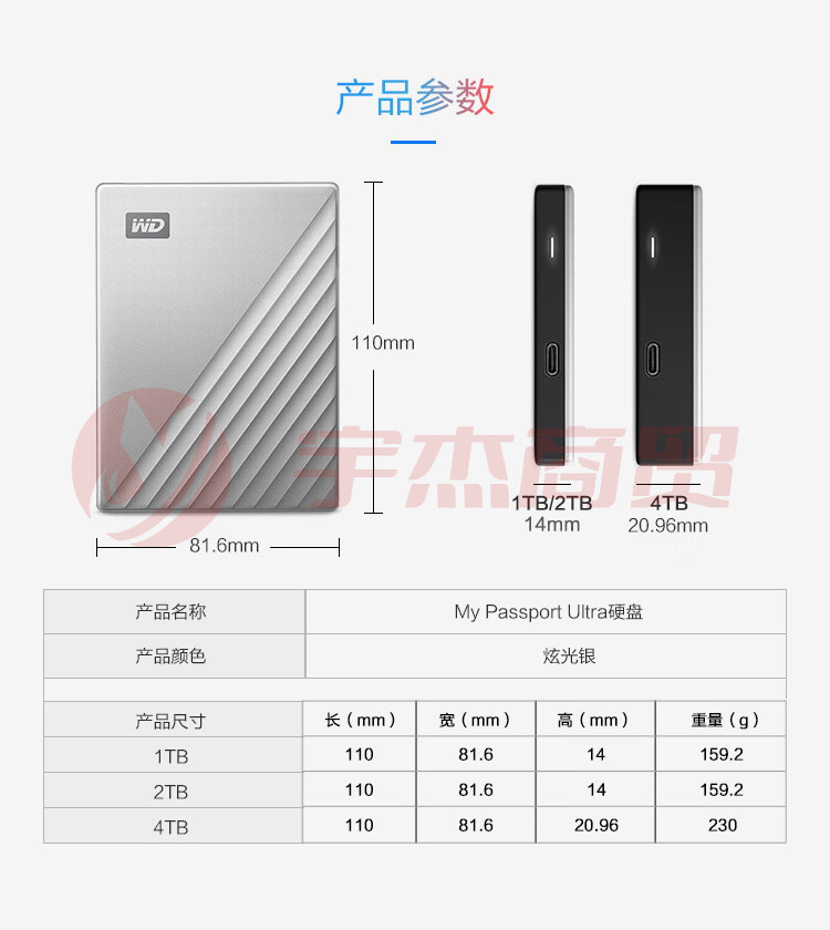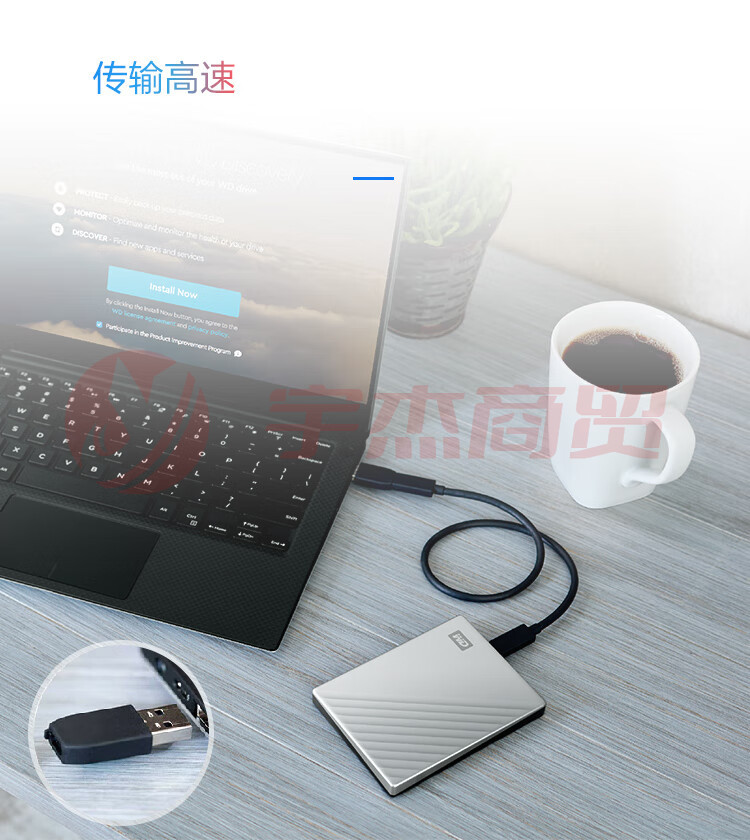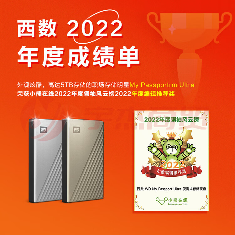 西部数据(WD) 2TB 移动硬盘 type-c My Passport Ultra 2.5英寸 金 笔记本外接硬盘 便携加密存储 兼容Mac