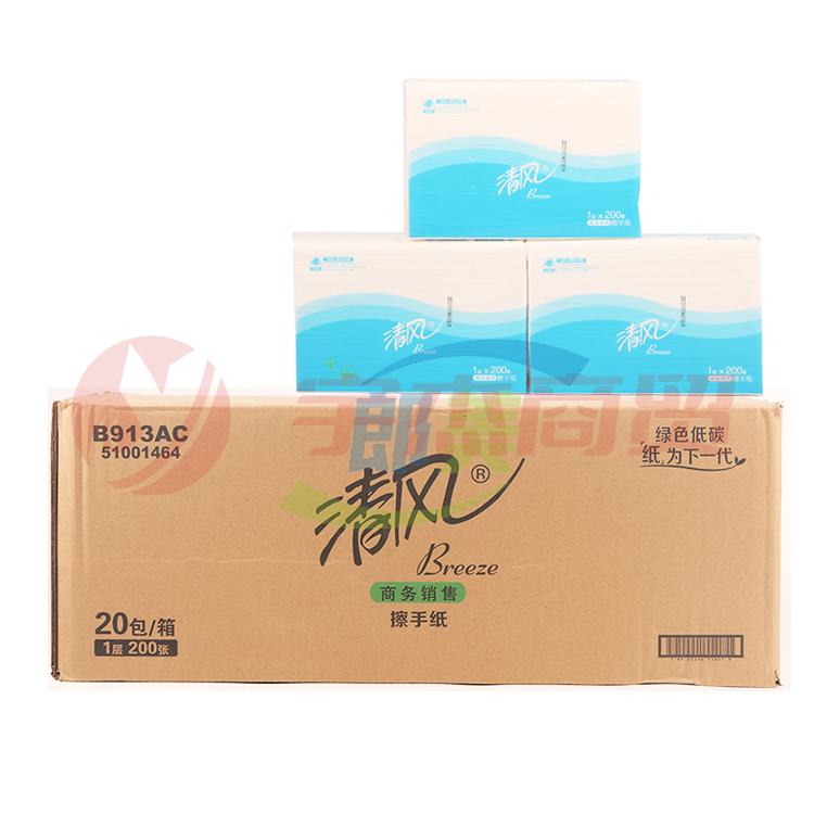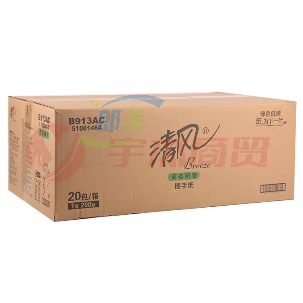清风B913AC单层三折擦手纸 (225mm×230mm/抽)×200抽/包×20包/箱