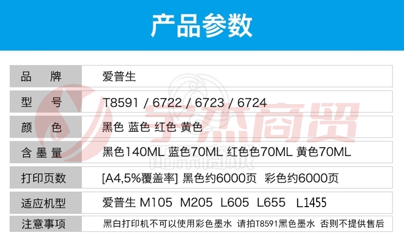 爱普生(EPSON)原装 T8591 黑色墨水适用M105/M205/L605/L655/L1455 T8591黑色