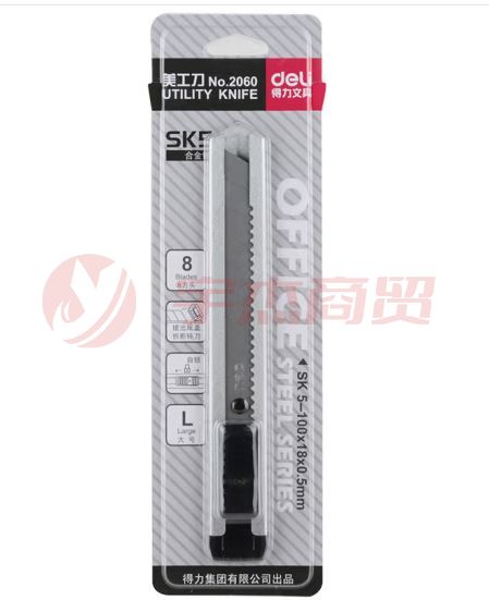 得力(deli) 大号美工刀金属美术刀 裁纸刀 手工刀 切纸刀 办公文具 银灰色2060